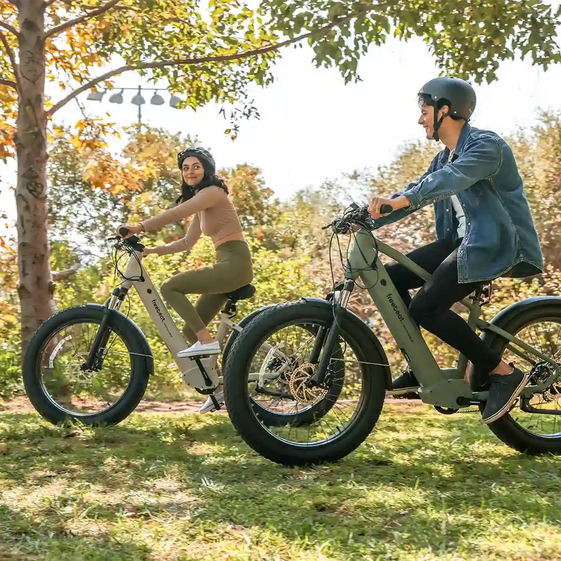 Designed to thrive in different terrains The Allroad 2-in-1 Fat Tire eBike takes on every terrain easily. If you’re riding on rocky trails in the mountains or taking a ride through urban roads, its all-terrain capabilities make every ride an adventure. The fat tire’s design guarantees maximum traction and stability, giving you a smooth and comfortable ride across a variety of terrains.